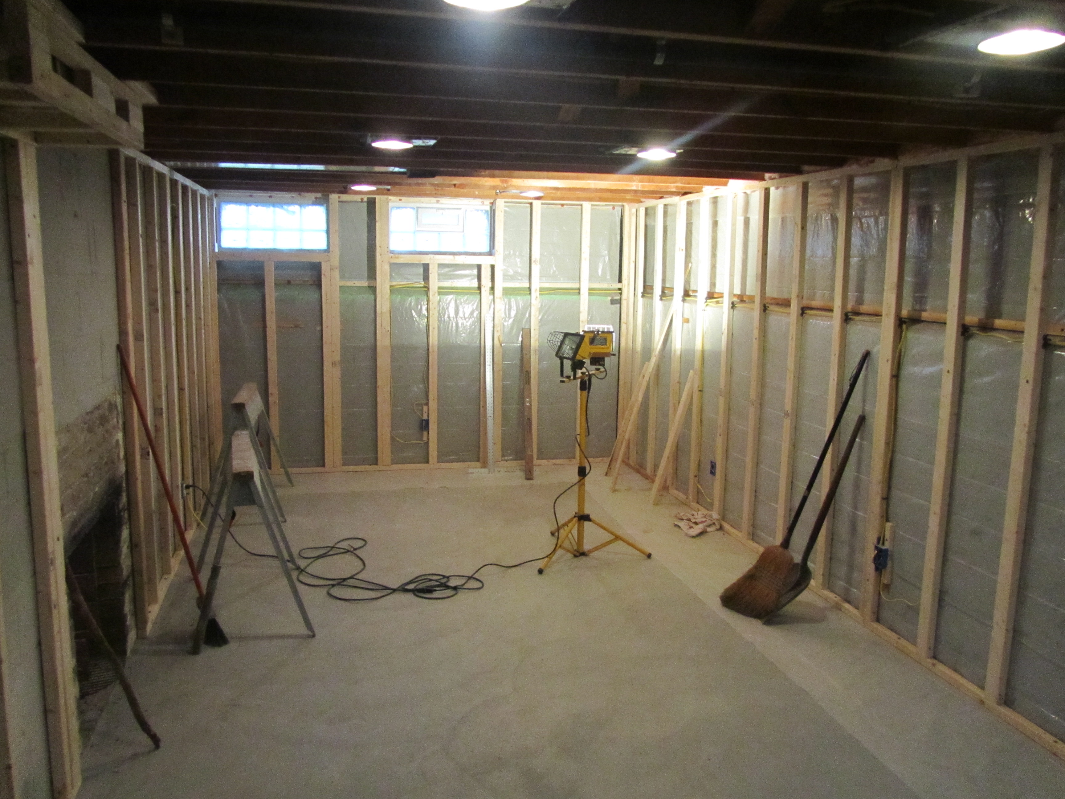 Dan and John were able to get the windows done on a sunday morning, and that following week they busted out the stud work along all the walls. It was so nice to see our basement taking on a new look!